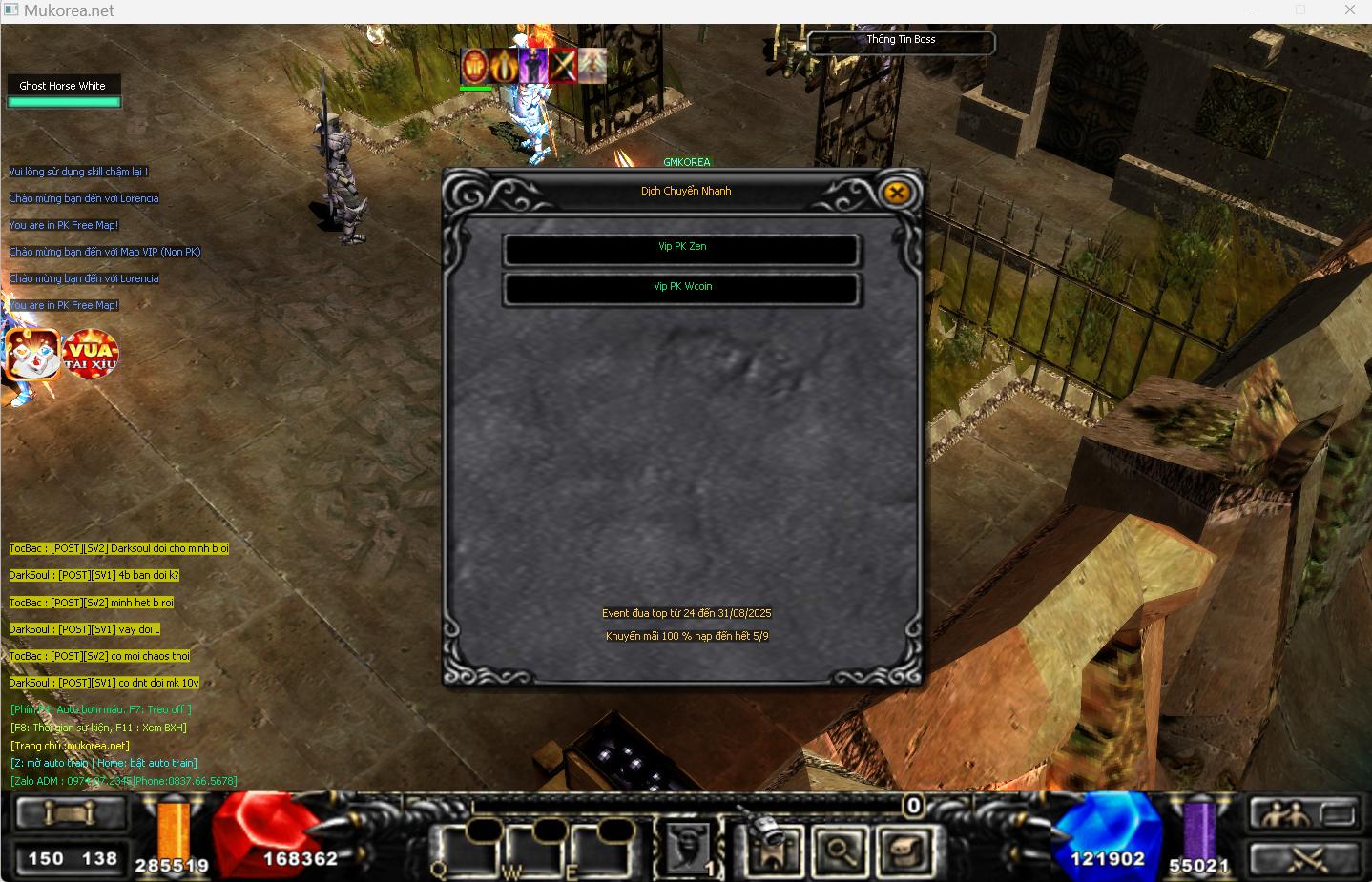 Tính năng dành cho người chơi VIP tại máy chủ Vô Song – MuKorea.Net