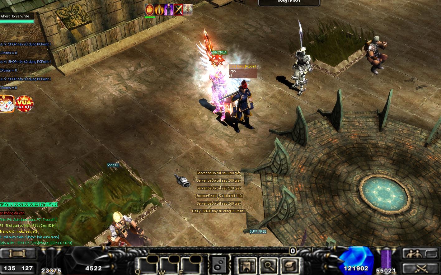 Các bạn tới thành Lorencia sever 10 tọa độ : 136,127 ấn D -> giao dịch NPC pcpoint để đổi quà