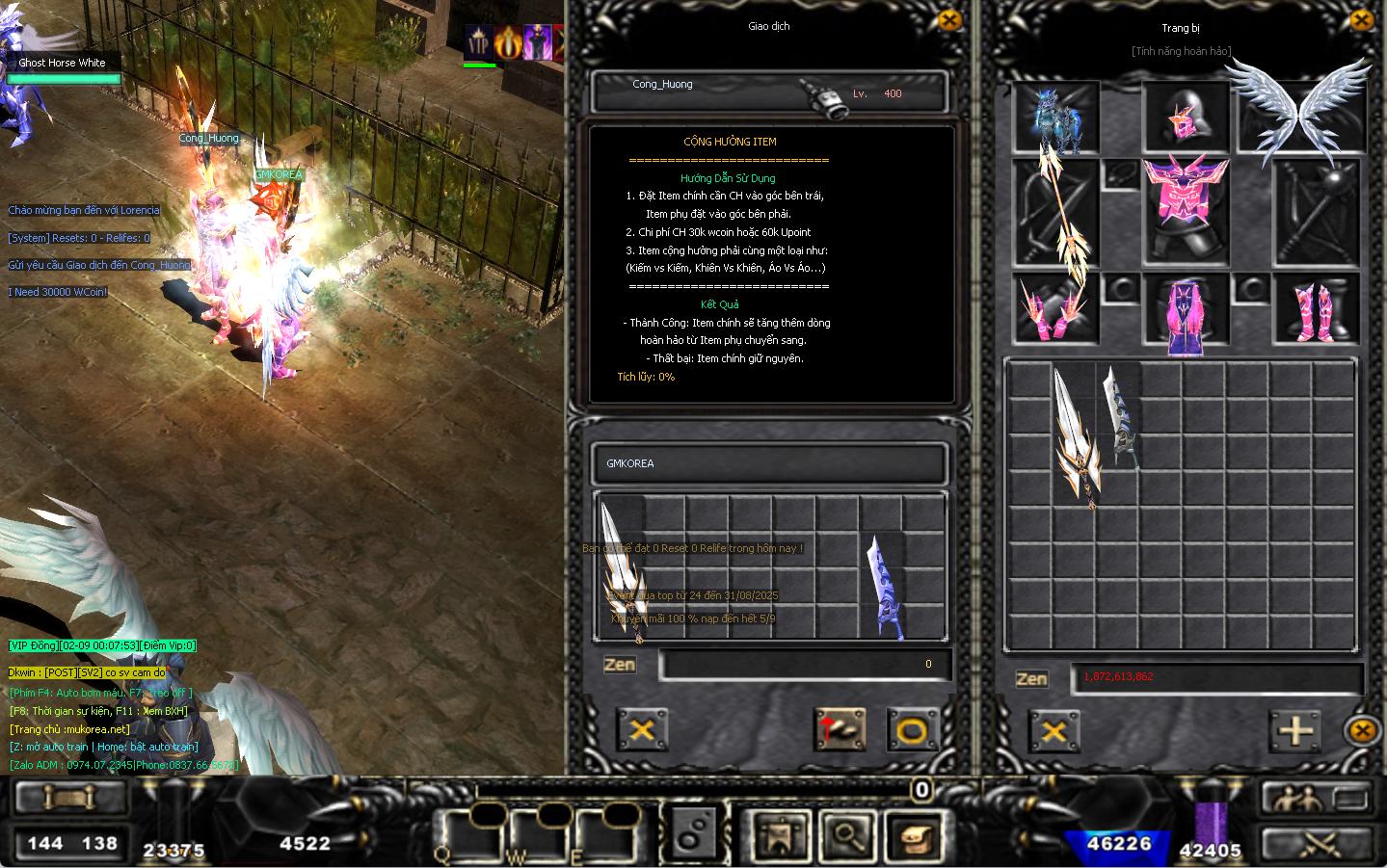 -Lưu ý các item phải để cách xa nhau ấn ok nếu thành công npc sẽ báo thành công